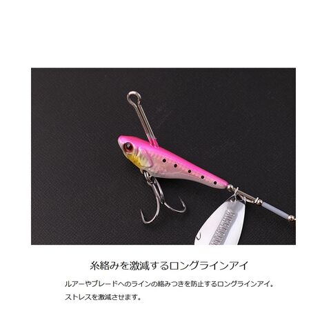 ルアーやブレードへのラインの絡みつきを防止するロングラインアイ。