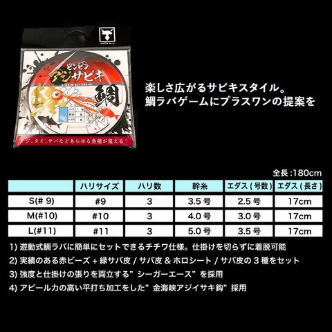 このビンビンアジサビキは誘導式の鯛ラバに対応するチチワ仕様を採用し、