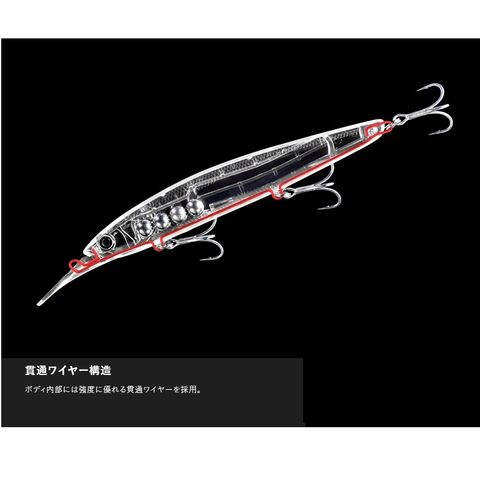 全長128mm/自重27.2gのボディに重心移動システムと空気抵抗を押さえる丸型断面デザインにより優れた遠投性能を発揮。海風のある状況下でも狙ったスポットへのアプローチを可能にしました。