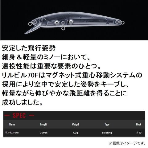 リルビル70Fのシルエットは、日本全国においてバスのメインベイトとなる細身の小魚がモチーフ。