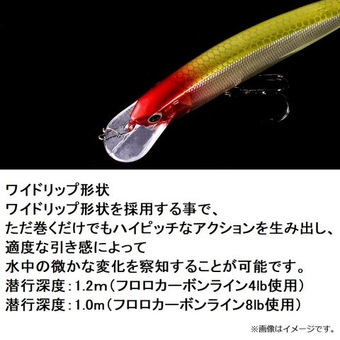 潜行深度:1.2m(フロロカーボンライン4lb使用)、1.0m(フロロカーボンライン8lb使用)