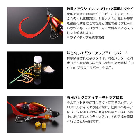 水中で大きく動きながらアピールするカーリーネクタイも専用設計。