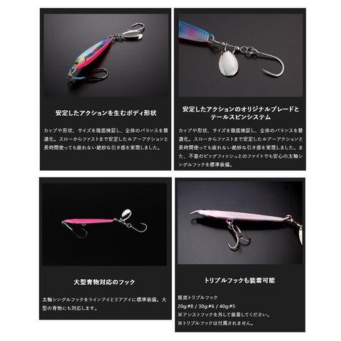 カップや形状、サイズを徹底検証し、全体のバランスを最適化。スローからファストまで安定したルアーアクションと長時間使っても疲れない絶妙な引き感を実現しました。