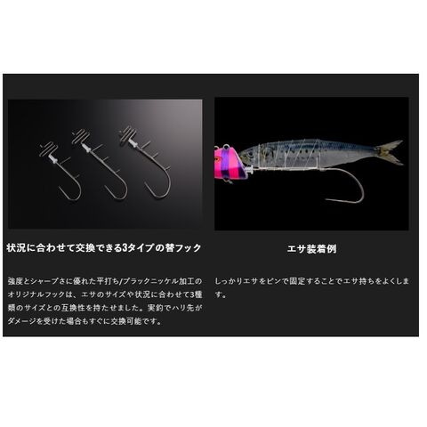 同じフックを装着できる設計。水深や潮の速さ、濁り具合や天気、