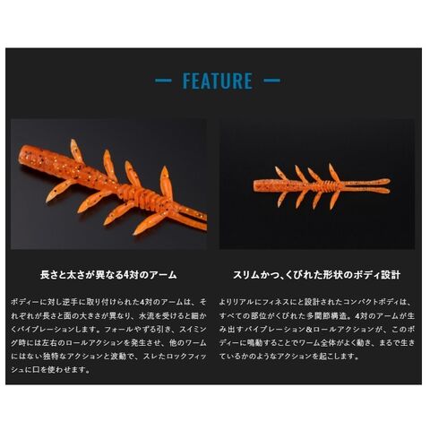 甲殻類をイメージし、テキサスリグやフリーリグはもちろん、