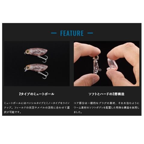 ミュートボールにはペンシルタイプとミノータイプをラインナップ。