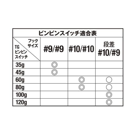 各ウェイトに合わせたフックとネクタイを2色アソートでセットになっています。