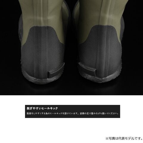 脱着をしやすくする為のヒールキックを設けています。逆側の足で踏みながら脱いでください。