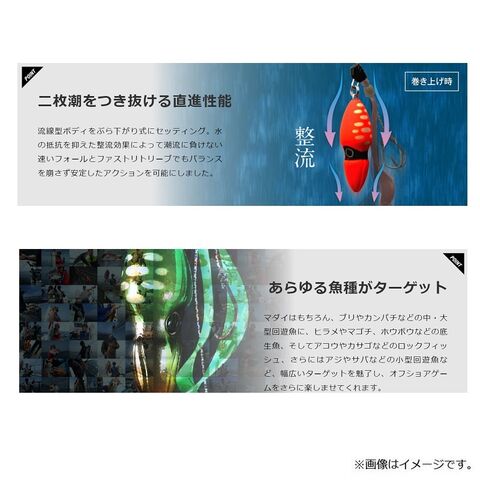 水の抵抗を抑えた整流効果によって潮流に負けない速いフォールと