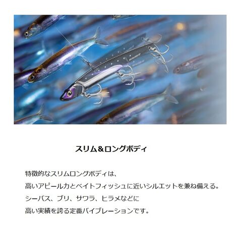 シーバス、ブリ、サワラ、ヒラメなどに高い実績を誇る定番バイブレーションです。