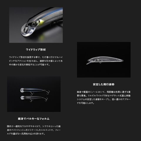 リルビルシリーズ共通のワイドリップは、キレのあるアクションと適度な引き感を実現。