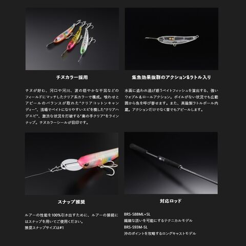 喰わせとアピールのバランスが取れたクリアコットンキャンディー、浅場でベイトになりやすいエビを模したクリアハデエビ、激渋な状況を打破する奥の手クリアをラインナップ。