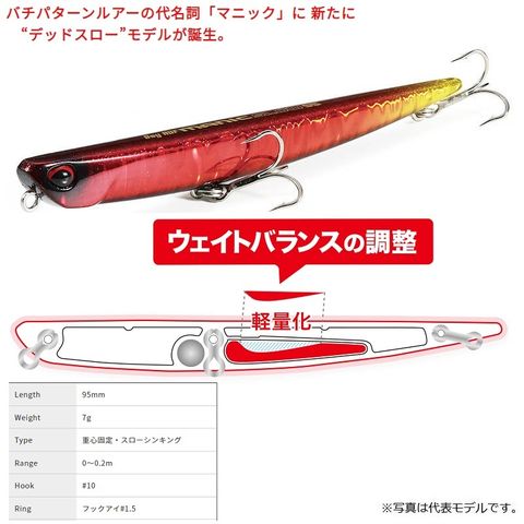 バチパターンルアーの代名詞「マニック」に 新たにデッドスローモデルが誕生。