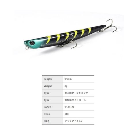 ボディ形状はもちろんのこと、設定幅の狭い比重、浮力、ウエイトポジションなど、多くの要素を完璧にセットアップし、