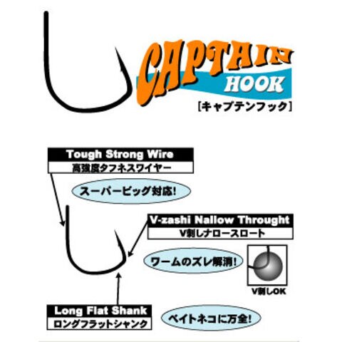 ZAPPU「キャプテンフック」はインチワッキーやパイルドライバーで培ったノウハウをワッキーフックに移植。鋭角のスロートはV刺しが可能で、ネコリグ等のワッキーセッティングに最適です。ロングホールディングベントにより、タテ刺しの場合でも十分なホールド力を発揮し、完璧なフッキングを約束します。