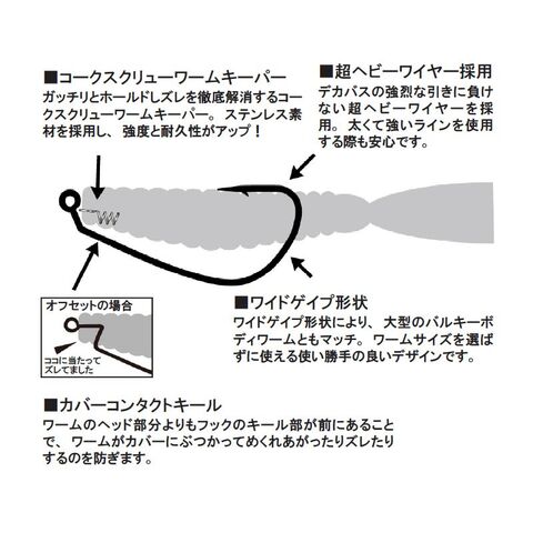 コークスクリューワームキーパーがワームをガッチリホールドし、ズレを気にせず釣りに集中できます。
