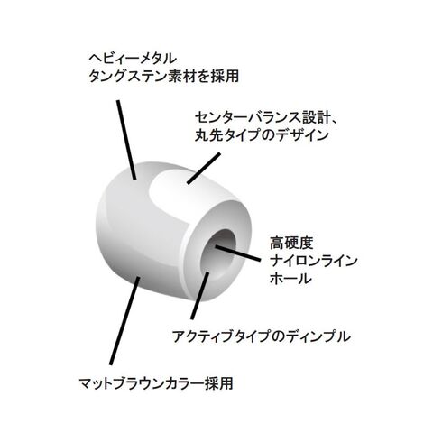 ヘビィーメタルタングステン素材を採用。コンパクトなシルエットで抵抗が小さく、フォールスピードが早くなります。高硬度なので感度が良く、ボトムマテリアルを察知できます。