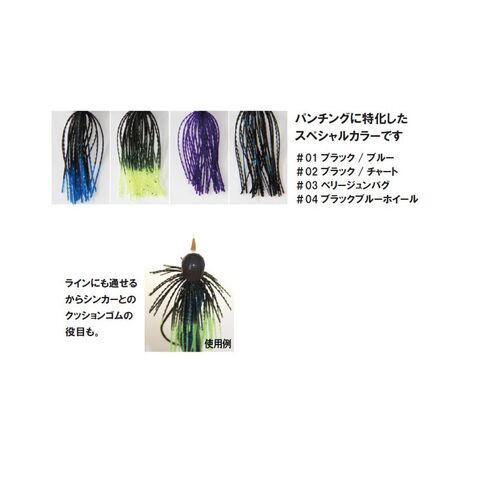 ワームのボリュームアップやフォールのスローダウンなど、さまざまな効果を発揮します。凸凹スカート採用でフレア感UP !!