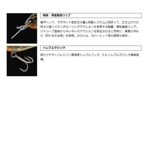 掛かりやすくバレにくい高強度トレブルフック、E.G.トレブルマジック標準装備。