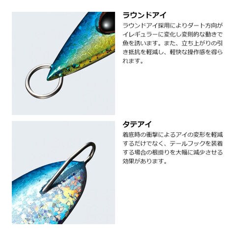 ラウンドアイ採用によりダート方向がイレギュラーに変化し変則的な動きで魚を誘います。
