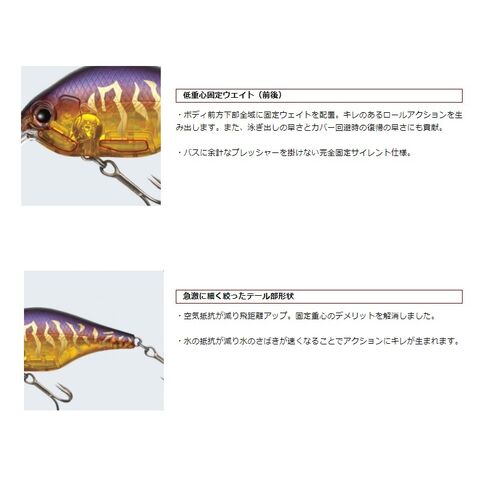 フラッシングによる明滅効果を生み出し、クランクベイトの振動、