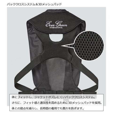 体にフィットし、ジャケットがズレにくいバッククロスシステム。