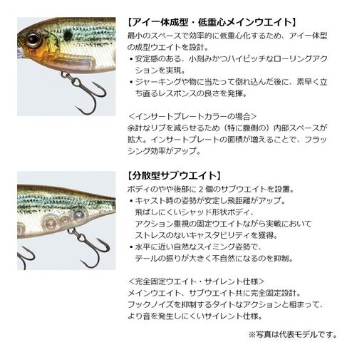 ・キャスト時の姿勢が安定し飛距離がアップ。飛ばしにくいシャッド形状ボディ、