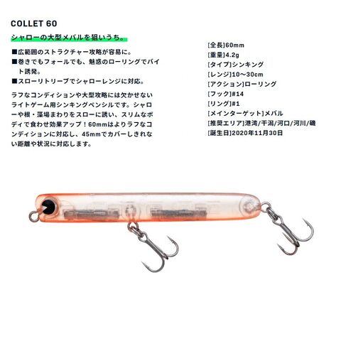 シャローや根・藻場まわりをスローに誘い、スリムなボディで食わせ効果アップ!