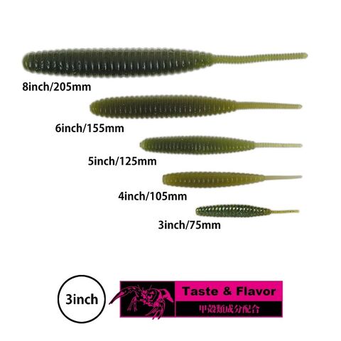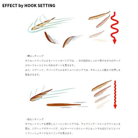 ベイトフィッシュをデフォルメしたワイドボディに刻まれた凹凸と、 急激に細められたテールを特徴とするシルエットは、あらゆるリグに幅広く対応し、 ソルト含有率25%のウルトラソフト・マテリアルが、ノーシンカーでもブッ飛ぶ優れた キャスタビリティと、ナチュラルなフォーリングアクションをもたらします。