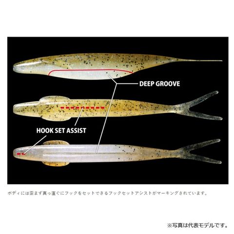 二股に分かれたテールは、ダートなどのアクションに追従するように揺らめき、ベイトフィッシュの尾ビレのようにリアルに動きます。