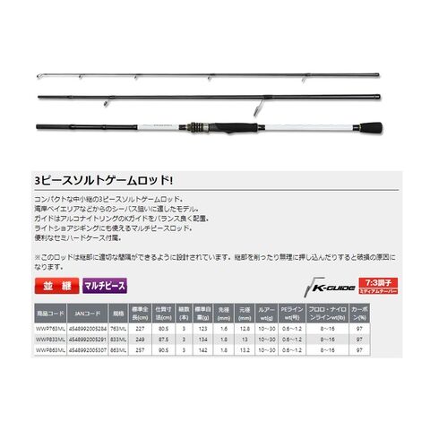 コンパクトな中小継の3ピースソルトゲームロッド。