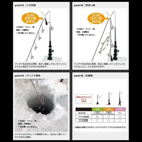 アンテナ部はマグネットで簡単に取り外せるので、氷や桟橋にひっかかった針なども外せます。