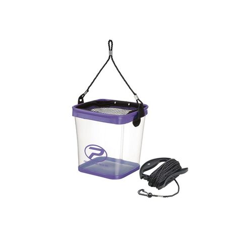 プロックス PX681421P クリア活かし角バケツ(ロープ・ホルダー付) 21cm パープル / 活かしバケツ 透明バケツ