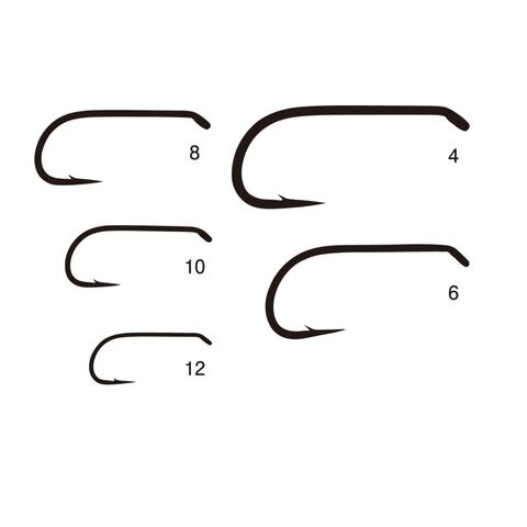 シルエットは「S12-1F」と同じですが、「ヘビーワイヤー」仕様のため、厚く巻かれたボディハックルを持つパターンでも、すぐ水に馴染みます。