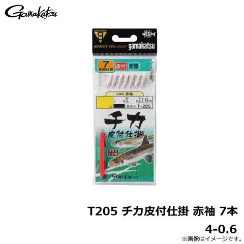 がまかつ T205 チカ皮付仕掛 赤袖 7本 4-0.6