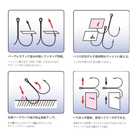 バーブレスフック同様の貫通性能と魚へのアンチダメージ性を実現。