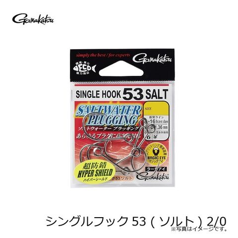 フレッシュウォーターにおいてプラッギング専用シングルフックの定番「シングルフック 53」にソルトウォーター対応機種。