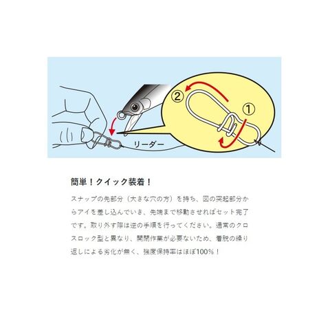 「ツインロックスナップ形状」を採用しており、クイックな脱着が可能です。