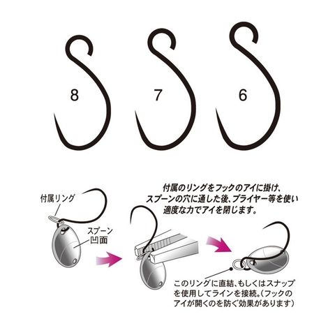 スプーンに付属のソリッドリングと一緒に装着しノットを結束して使用します。