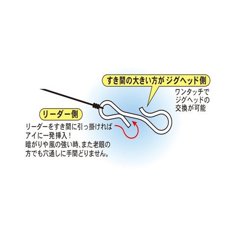 瞬時にルアー交換、結び直しが可能なスリットスナップで快適な釣りをお楽しみ下さい。