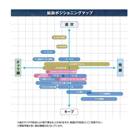 幅広い号数設定により、小型魚の数釣りから本流での大物狙いまで対応します。