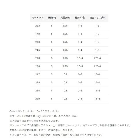 ※モーメント=標準自重(kg)×竿尻から重心までの長さ(cm)