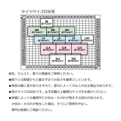 ※股下とは股間から土踏まずまでの長さを基準としています。