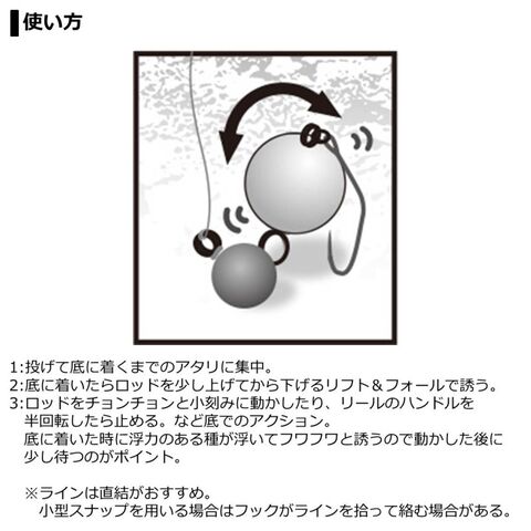 浮力のある種(玉の部分)が水底でフワフワと浮いて誘うルアー。