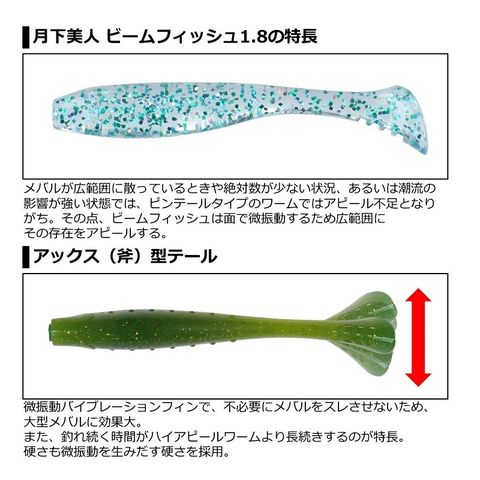 シャッドテールのようなワイドパタパタアクションとは違い、メバルがスレにくいのでバイトが長時間持続するのが特長。