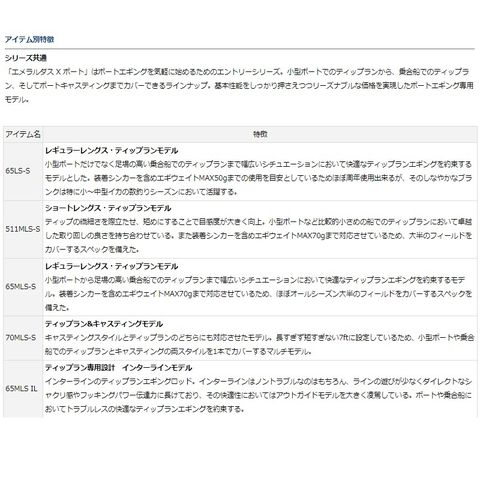 ●「エメラルダス X ボート」はボートエギングを気軽に始めるためのエントリーシリーズ。小型ボートでのティップランから、乗合船でのティップラン、そしてボートキャスティングまでカバーできるラインナップ。基本性能をしっかり押さえつつリーズナブルな価格を実現したボートエギング専用モデル。