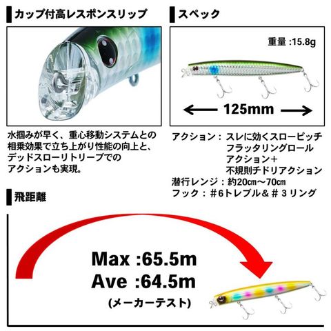 デッドスロー対応、スローピッチフラッタリングロールアクション。