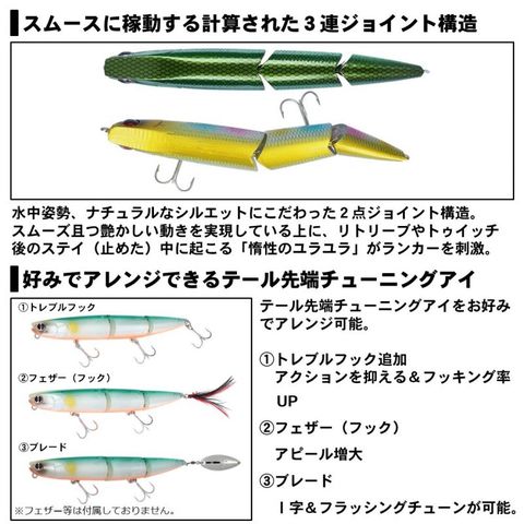 艶かしいスネークロールアクションを備えた3連ジョイントスイミングペンシル。