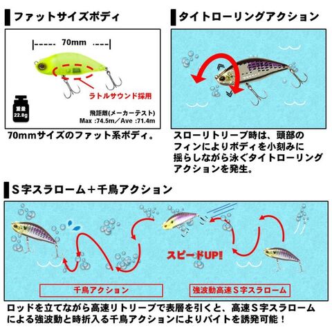 高速S字スラロームによる強波動と時折入る千鳥アクションによりバイトを誘発可能!