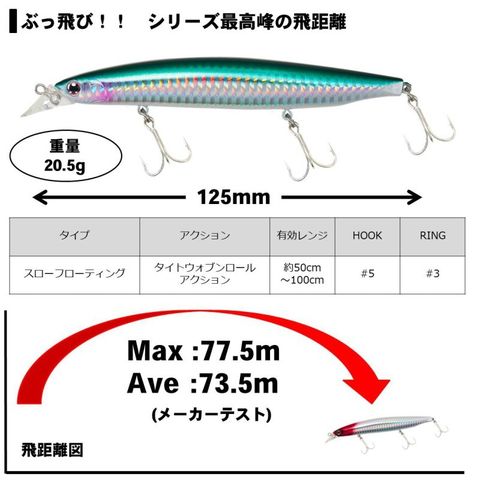 (参考:SLZ-バーティス120F飛距離=Max71m、Ave66.5m)